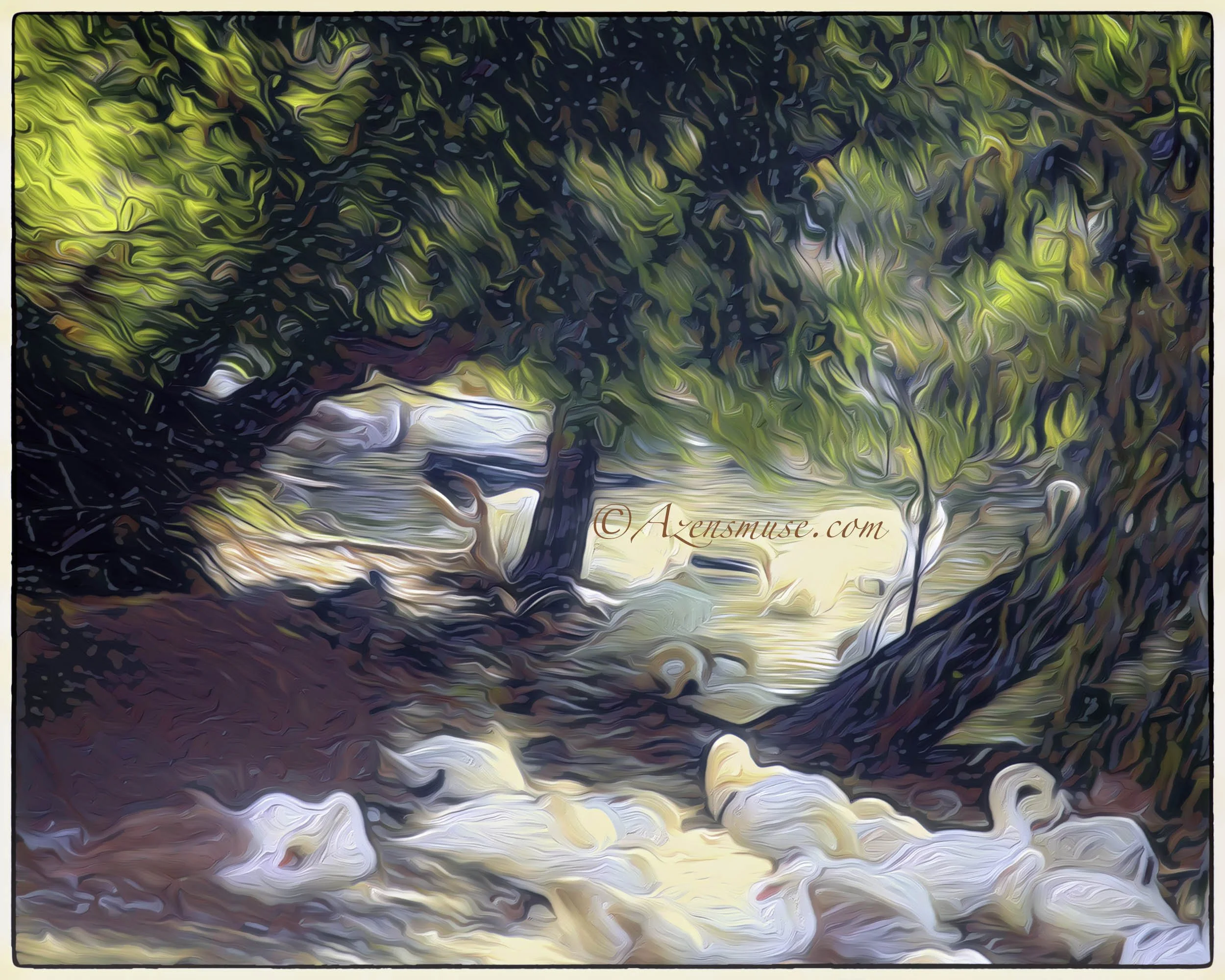 The young gingko tree, having shed most of its leaves, did not look as impressive as some big mature gingko trees I’ve seen elsewhere. That day I was shooting with my brand-new Nikon Coolpix1000 camera, but instead of using its pre-set mode - i.e., point and shoot - I was trying to use its manual mode setting like as if it was my DSLR Z9 or D850. Looking at the pictures from that day I realized that the pre-set mode was perfect for a walk in the woods and talking with friends rather than making ‘serious’ award-winning pictures. Well did I regret ignoring the small young gingko tree. (This tree in the foreground in this picture is not a gingko tree.) To console myself I painted an abstract of gingko branch and leaves in acrylic on canvas.